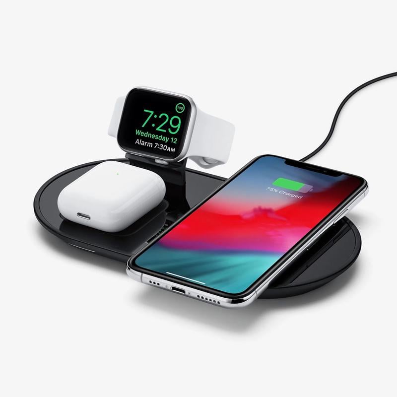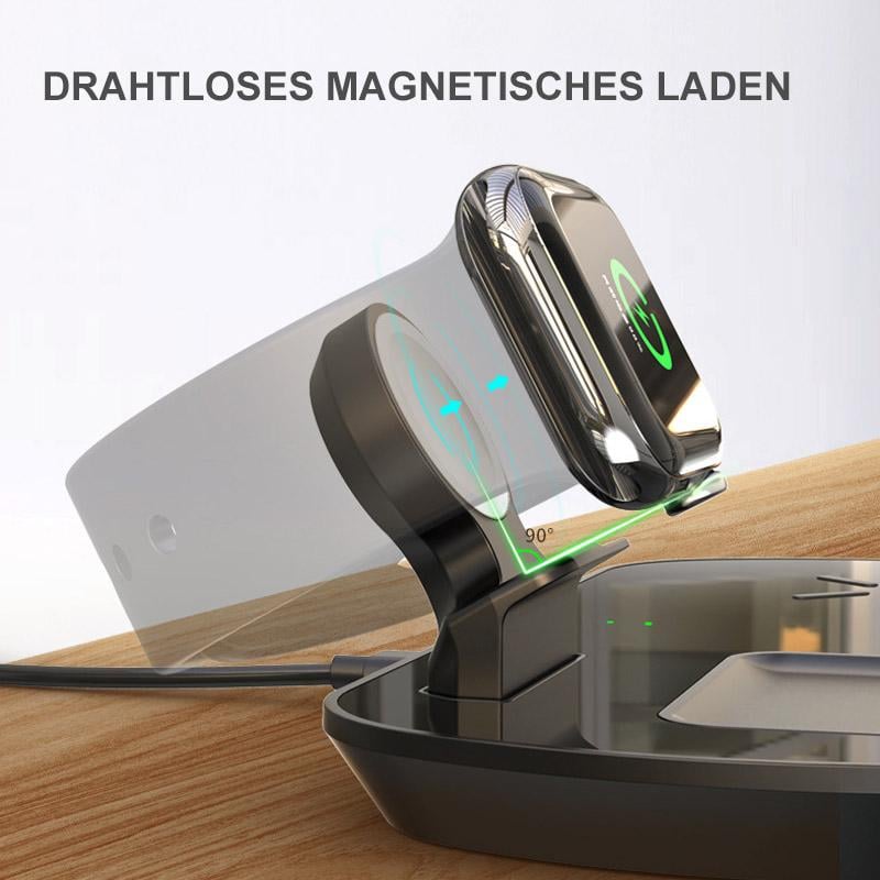 Laden Sie gleichzeitig drei Geräte drahtlos auf: Laden Sie gleichzeitig Ihr iPhone, Ihre AirPods und Ihre Apple Watch auf.
