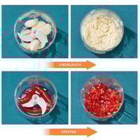 - 💧Wasserdichtes Design für einfache Reinigung: Der Motor des Mini Onion Choppers ist ein hochgradig wasserdichtes Design. Der gesamte Knoblauchzerkleinerer kann direkt nach Gebrauch ausgespült werden. Sie waschen den Motor, die Schüssel und die Klingen direkt und stellen die Küchenmaschine dann zum Trocknen beiseite. Der Mixbecher und das Messer sind abnehmbar, was eine einfache Reinigung ohne Rückstände ermöglicht. (Hinweis: Die Klingen sind ultrascharf, bitte bei Montage oder Demontage aufpassen)